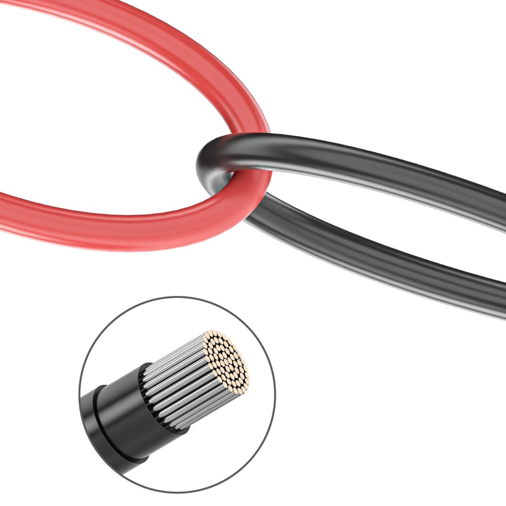 ケーブルを選ぶ際は、導体のサイズ(太さ)、絶縁素材、耐候性、認証規格(例:UL、TUV)を確認する必要があります。適切な太さ(例:4mm²や6mm²)でなければ、電圧降下や発熱の原因になります。また、屋外使用に適した耐紫外線仕様であることも重要です。信頼できるメーカーの製品を選ぶことで、長期的な安全と性能が確保できます。