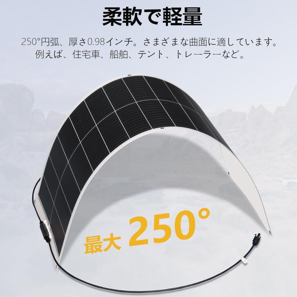 | 薄膜ソーラーパネル | 80W~150W | 軽量、曲面設置可 | 効率が低い |